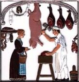 Dies wurde meist gemeinsam von 2 bis 3 Bauern gemacht; denn dabei ging es um die Gewinnung von Suppenfleisch. Als Würste kamen nur Graupenwürste in Frage, wofür Schweinespeck mit verarbeitet wurde. Das gewonnene Fleisch wurde in einem Holzgefäß eingesalzen, und es hat sich in der kalten und trockenen Luft über Wochen frisch gehalten. Nach dem Kuhschlachten wurden 1 oder 2 Schweine geschlachtet, je nach der Größe der Familie. Beim Schweineschlachten wurde schon etwas Gemütlichkeit eingeplant. Man arbeitete so, daß nachmittags gegen 16 bis 17 Uhr alles aufgearbeitet war.