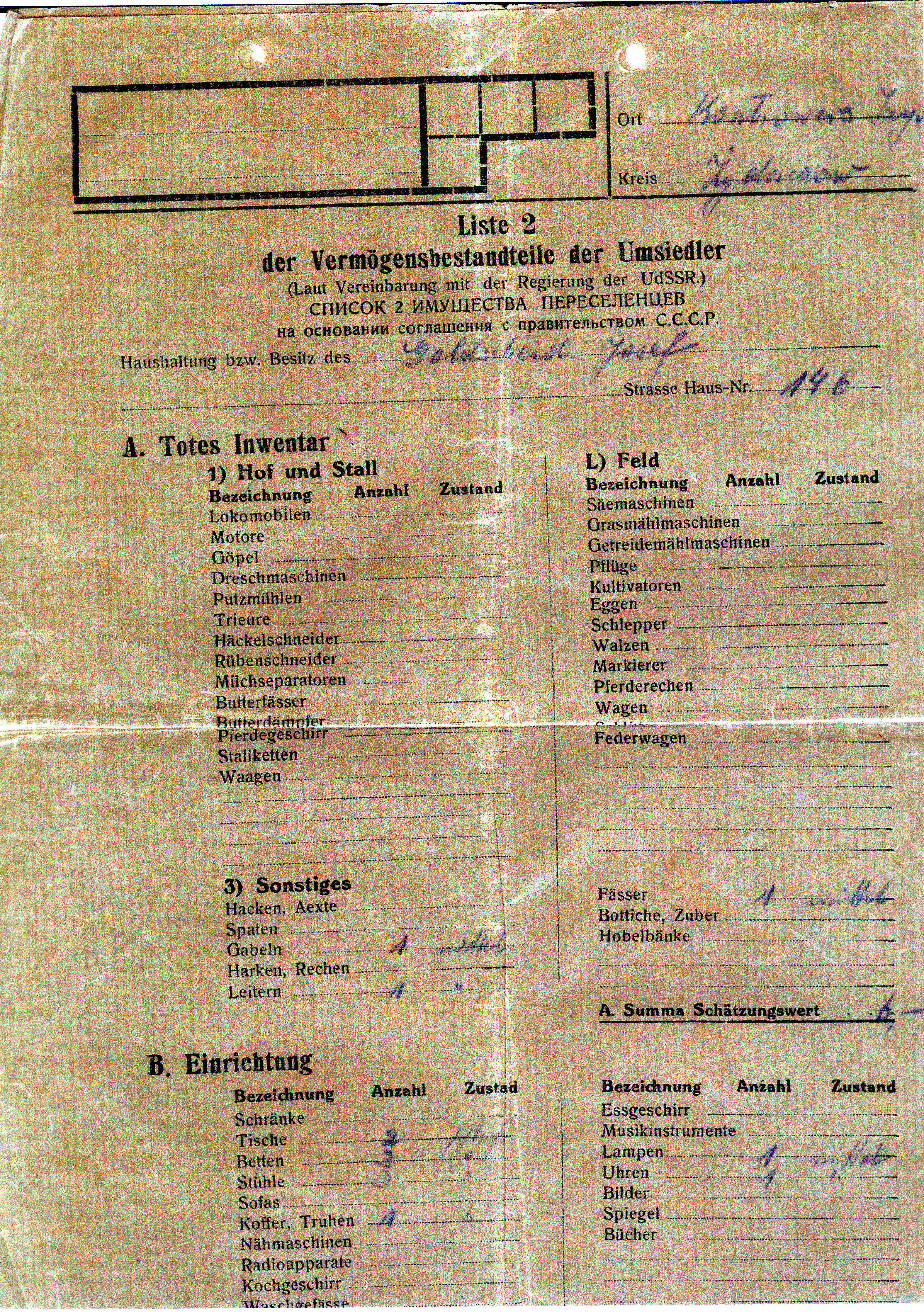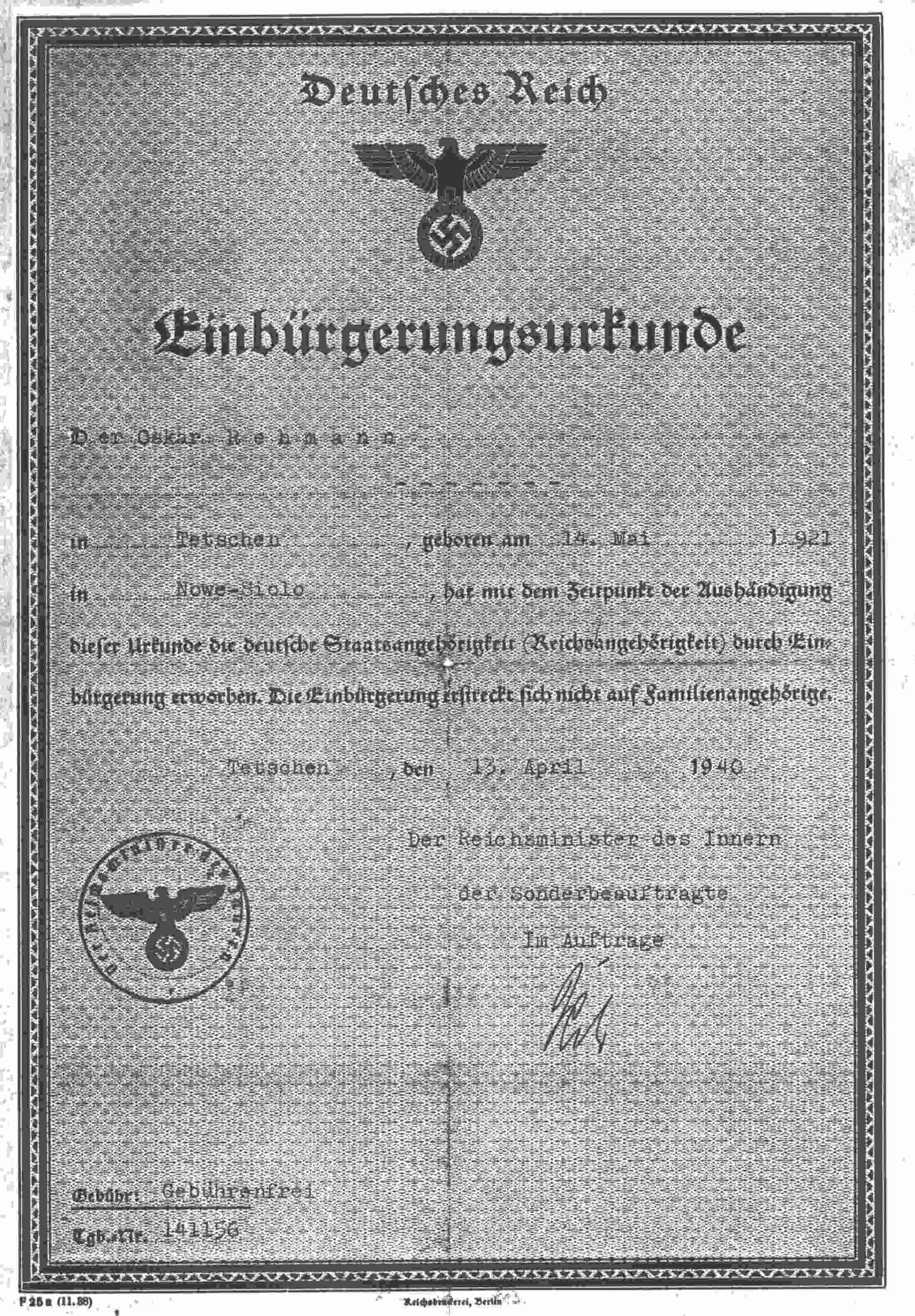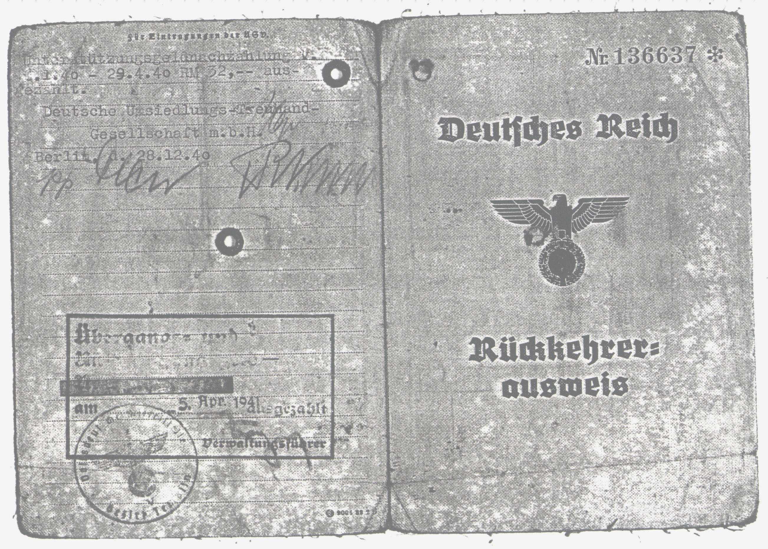 Die Umsiedlerkarte Der Rückkehrerausweis Einbürgerungsurkunde Oskar Rehmann Banknoten aus Galizien bis Ende des 1. Weltkrieges Vermögensliste der Umsiedler